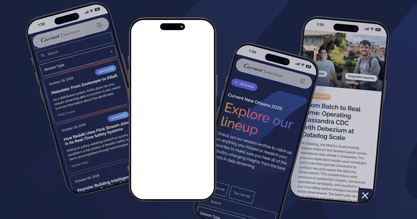 over the course of three years, I led the effort to make confluent’s website for current: the data streaming event more engaging and less disjointed. initially, the site was a couple static pages, that linked out to (or iframed in content from) a variety of different external pieces of event data, leaving the site looking lackluster and inconsistent, and degrading user experience.