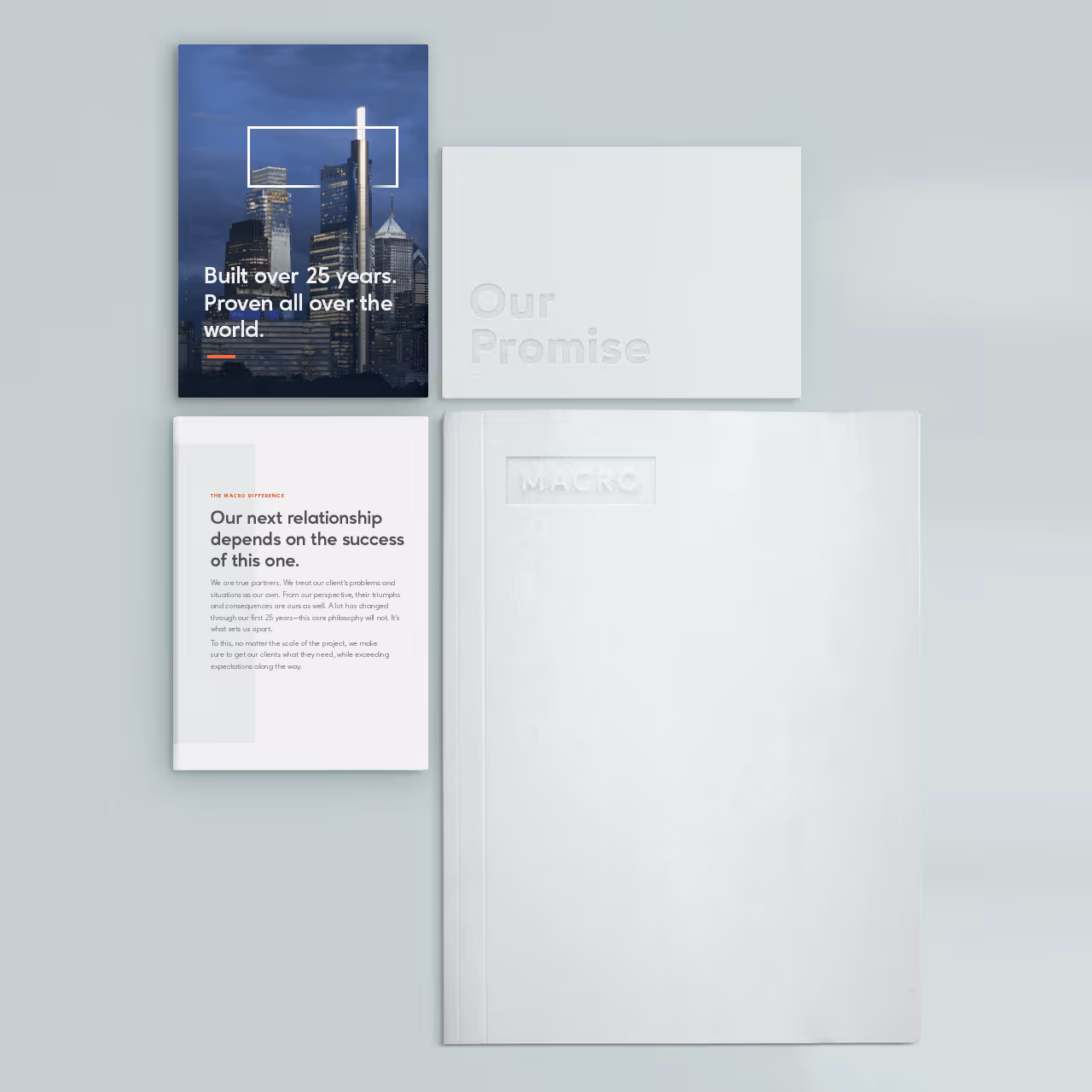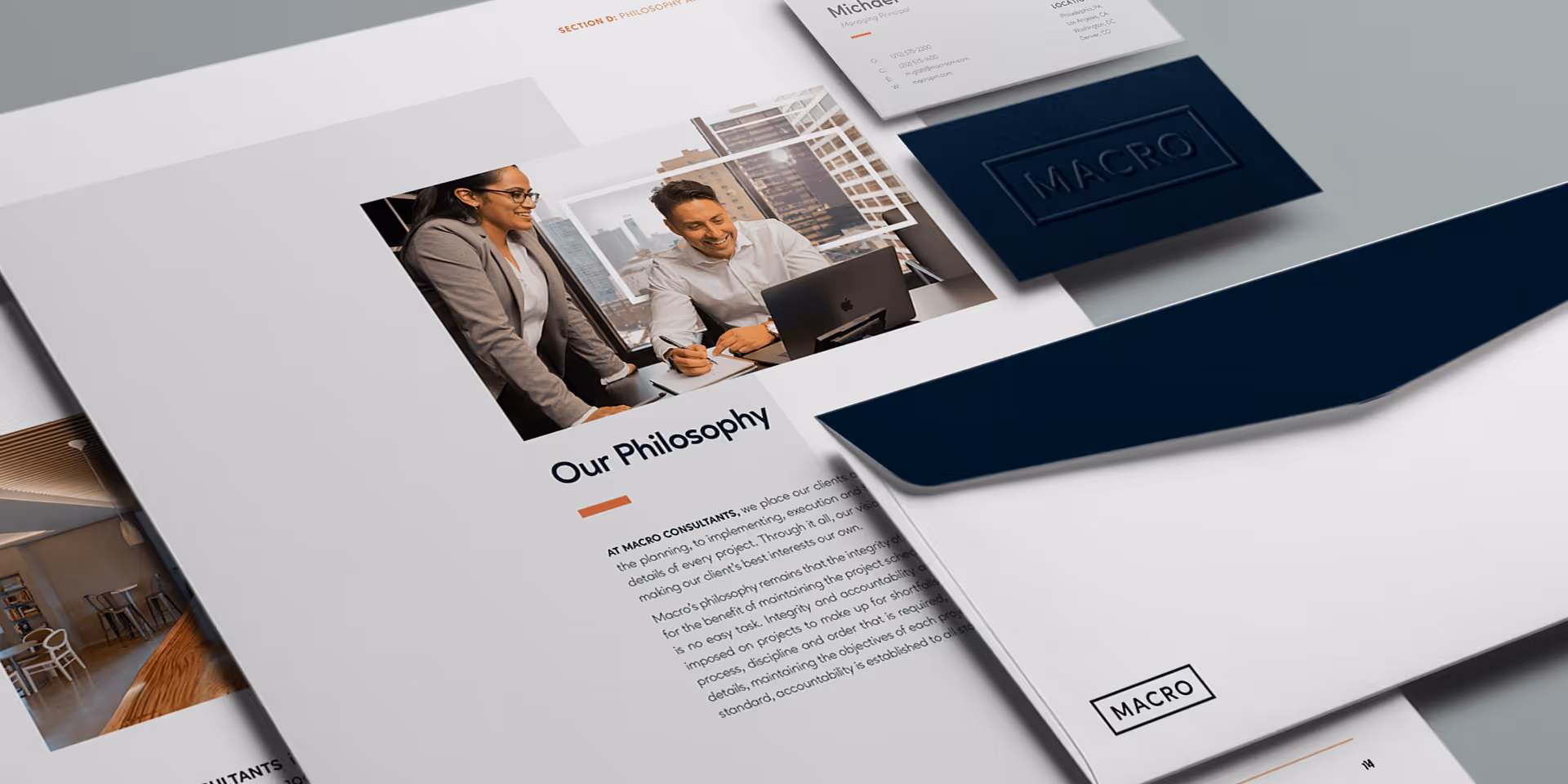 macro consultants is a leading consulting firm that offers a wide range of services to clients across different industries, including corporations, institutions, and large developers. they have a reputation for delivering high-quality services that help businesses grow and succeed. their visual identity however, lagged behind that reputation. after an initial “bridge” branding project to quickly professionalize the materials they already had, we set about evolving the brand into something more sophisticated that matched what their business offers.
